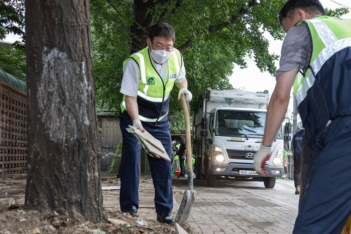 | ▲ 김 구청장이 노점상 정비 및 청소를 하고 있다. |