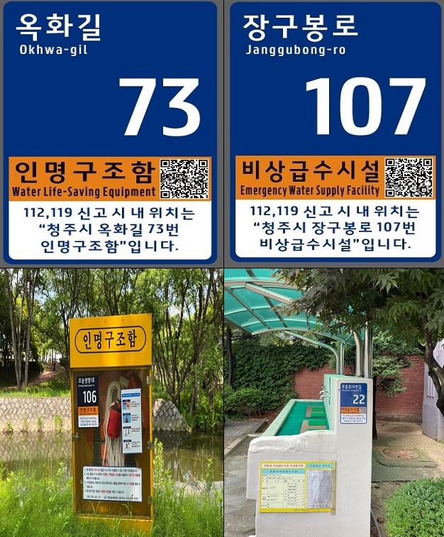 아울러 청주시는 2022년 주소정보 특수시책으로, 사물주소판(주소가 부여된 시설물에 설치하는 주소정보 안내시설)의 설치의무자인 관리부서(안전정책과, 각 읍ㆍ면ㆍ동 행정복지센터)와 협업해 지역 내 비상급수시설에‘QR코드 삽입형 사물주소판’ 40개소를 설치 완료했다고 밝혔다.