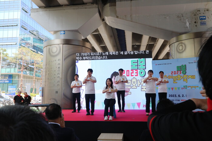 [시민일보 = 여영준 기자] 서울 도봉구의회(의장 강신만)는 최근 농아인의 날을 맞아 창동역 고가하부광장에서 진행된 ‘2023 도봉수어문화축제’에 참여해 주민들과 함께 수어문화를 익히고 농아인들을 격려하는 시간을 보냈다.