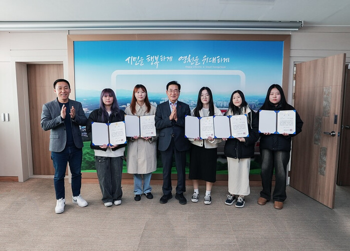 [영천=박병상 기자] 영천시(시장 최기문)는 지난 16일 영천시 홍보 영상을 제작한 대구대학교 시각디자인학과 학생들에게 영천시장상을 수여했다.