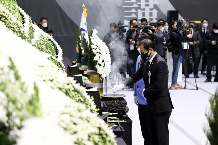 [수원=채종수 기자] 장현국 경기도의회 의장이 최근 평택시 신축 공사장 화재 현장에서 순직한 소방관 3명의 합동 영결식에 참석했다.