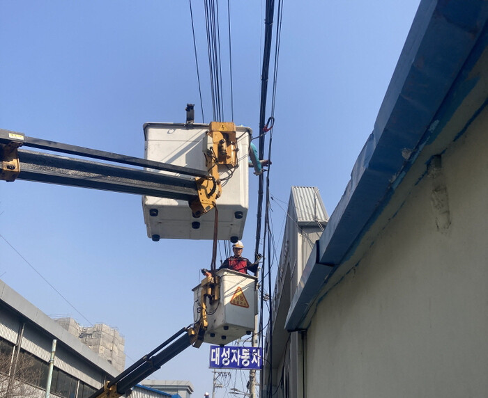 | ▲ 도봉구 지역 내 한 곳에서 공중선 정비가 진행되고 있다. (사진=도봉구청 제공) |