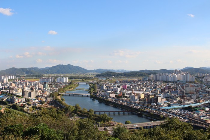 | ▲ 하늘에서 보이는 순천시 도심과 동천 전경. (사진제공=순천시청) |