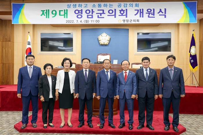 [영암=정찬남 기자] 전남 영암군의회가 최근 군의회 본회의장에서 군의원과 집행부 관계공무원이 참석한 가운데 제9대 영암군의회 개원식을 열었다.