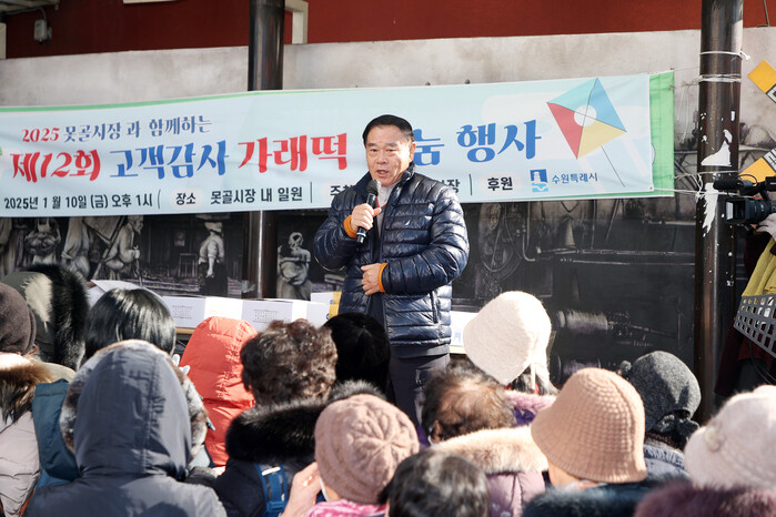 [수원=임종인 기자] 경기 수원시의회가 최근 수원 못골종합시장 및 야외무대에서 열린 2025 가래떡 나눔 행사에 참석했다.