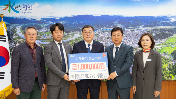 김동순 대표는 “아들이 타지생활을 하다가 작년에 합천에서 근무하게 되었고 많은사람들의 도움으로 결혼 후 새출발을 하게 되어 그의 보답으로 연말연시를 맞아 축의금의 일부를 좋은 곳에 쓰고 싶은 마음에 기부하게 되었다”며 “작은 정성이지만 관내 어려운 이웃에게 도움이 되었으면 좋겠다”고 말했다.
