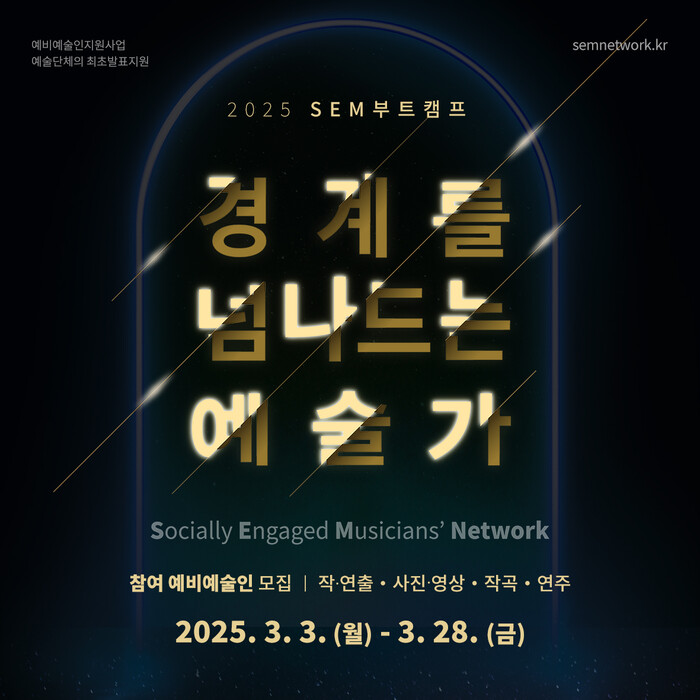 [시민일보 = 박소진 기자] 서초문화재단은 사회참여적음악가네트워크와 협력해 2024년에 이어 ‘SEM부트캠프’ 2025년 참여자를 모집한다고 12일 밝혔다.