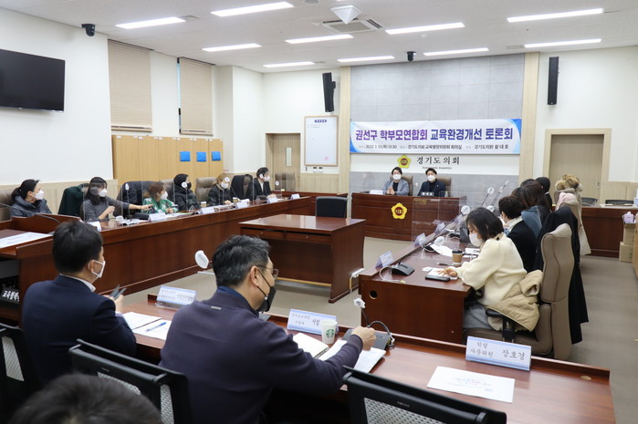 | ▲ 수원시 권선구 교육 환경 개선 토론회 진행 모습. (사진제공=경기도의회) |