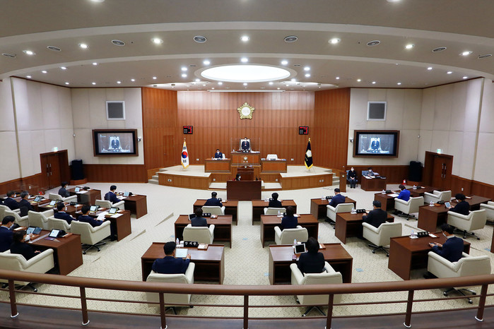 오 의장은 “제313회 임시회의 제2회 추가경정예산안 심의와 관련해 시의회는 긴급성과 필요성이 충분히 소명되지 못했다고 판단해 일부 예산을 삭감한 바 있다”며 “이와 관련해 일부 언론에서 시의회가 지방재정법을 위반했다는 취지의 보도가 있었지만, 이는 관련 법령에 대한 잘못된 해석에서 비롯된 것으로 생각한다”고 말했다.