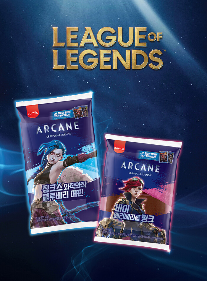 삼립은 LoL을 애니메이션으로 만든 작품인 ‘아케인(Arcane) 시즌 2’를 주제로 다양한 제품을 선보인다. ‘아케인’은 ‘리그 오브 레전드(League of Legends, 이하 LoL)’ 세계관을 기반으로 한 장편 애니메이션이다. 대도시 필트오버와 지하도시 자운이 마법 기술과 신념을 둘러싸고 전쟁을 벌이는 가운데, 두 자매가 서로 반대편에 서서 갈등하는 이야기를 다룬다.