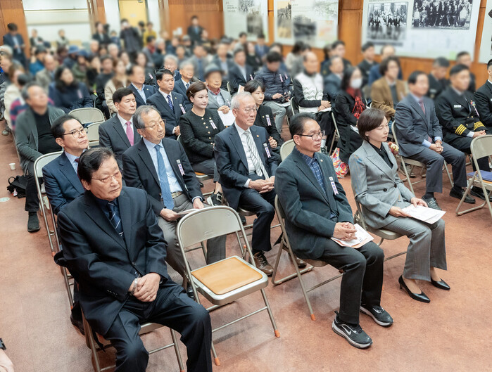 | ▲ 8일 도산안창호기념관 강당에서 열린 ‘도산안창호선생 탄신 제146주년 기념식’에 참석한 강남구의회 의원들(첫 번째 줄 좌측에서 2번째 복진경 부의장, 두 번째 줄 좌측에서 1번째 강을석 행정안전위원장, 세 번째 줄 좌측에서 3번째 이도희 경제도시위원장, 2번째 김현정 복지문화위원장. (사진=강남구의회 제공) |