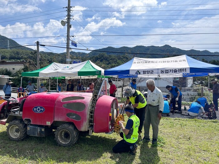 이날 농업기계 현장수리와 함께 농업기계 보관방법, 해마다 증가하는 농업기계 교통사고 예방을 위한 야광스티커도 부착하였으며, 농촌지역 고령보행자, 농업기계, 이륜차, 소형화물차 등 교통사고 예방 안전교육도 병행했다.