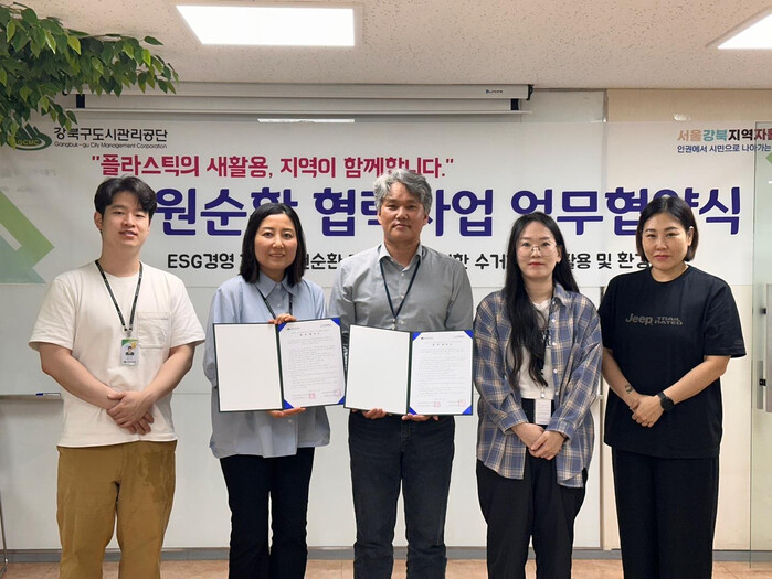 [시민일보 = 문민호 기자] 강북구(구청장 이순희)는 서울강북지역자활센터 희망제작소사업단(이하 ‘희망제작소사업단’)과 강북구도시관리공단(이하 ‘공단’)이 지난 6월 서울강북지역자활센터 교육실에서 ESG 경영 기반의 자원순환 경제 실현을 위한 업무협약을 체결했다고 밝혔다.