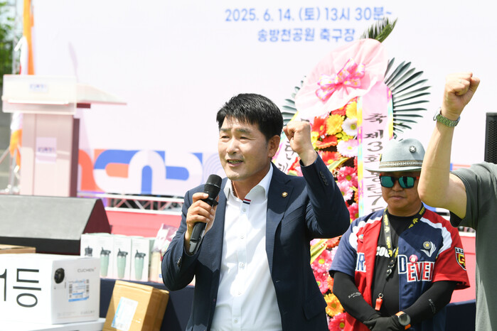 [화성=송윤근 기자] 경기 화성특례시의회(의장 배정수)는 14일, 산척동 송방천공원 축구장에서 열린 동탄7동 한마음 체육대회에 참석해 지역 주민과 함께 하나 되는 시간을 다졌다.