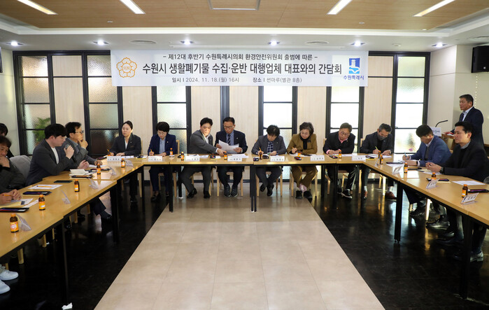 [수원=임종인 기자] 경기 수원시의회 환경안전위원회가 최근 13개 생활폐기물 수집·운반 대행업체 대표와의 간담회 시간을 보냈다.