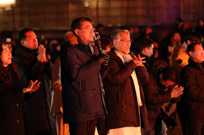 | ▲ 오승록 노원구청장이 9일 오후 서울 노원구 당현천 하류 일대에서 열린 ‘2025 을사년 정월대보름 한마당’ 행사에 참석해 인사말을 하고 있다. (사진=노원구청 제공) |