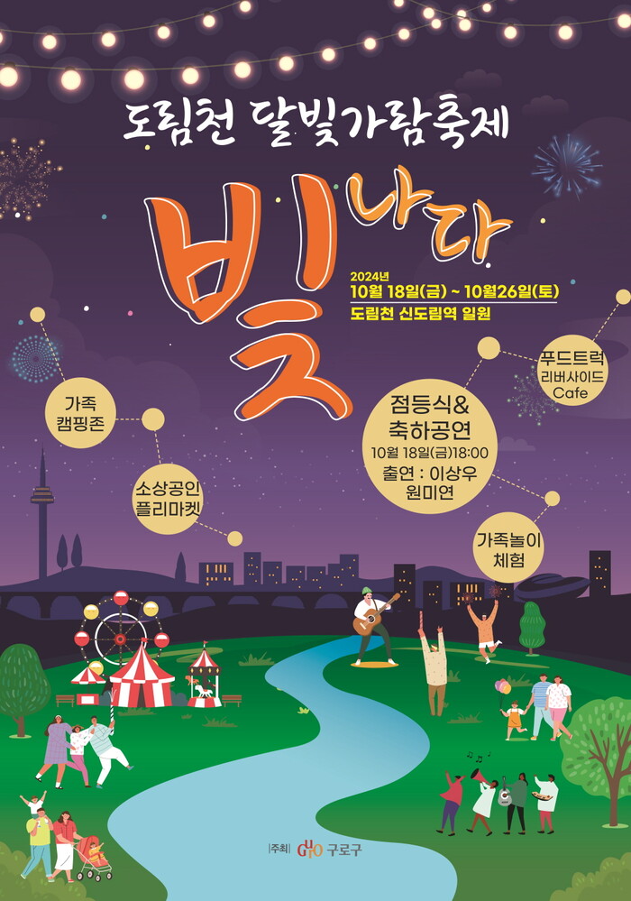 [시민일보 = 박소진 기자] 서울 구로구(구청장 문헌일)는 가을을 맞아 오는 18~26일 도림천 일대에서 ‘도림천 달빛가람 축제’를 개최한다.