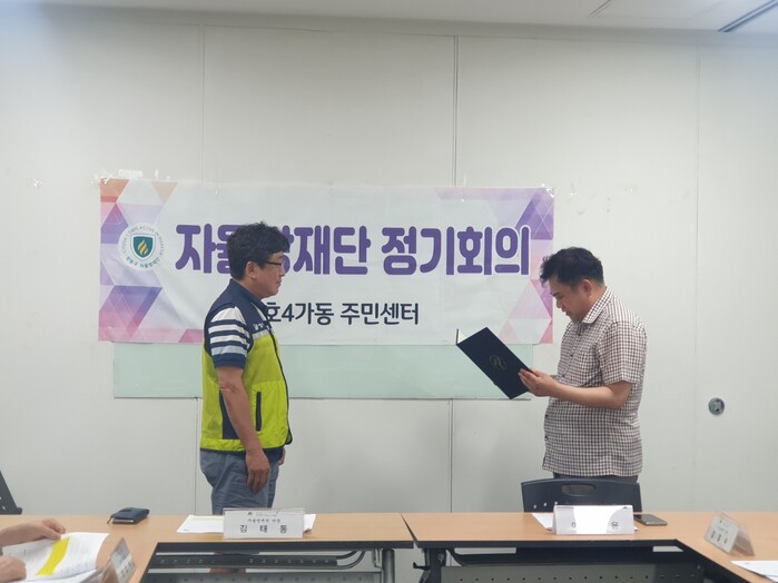서울특별시장 표창은 지난 5일 금호4가동 자율방재단 정기회의에서 이덕윤 금호4가동장이 전달했다.