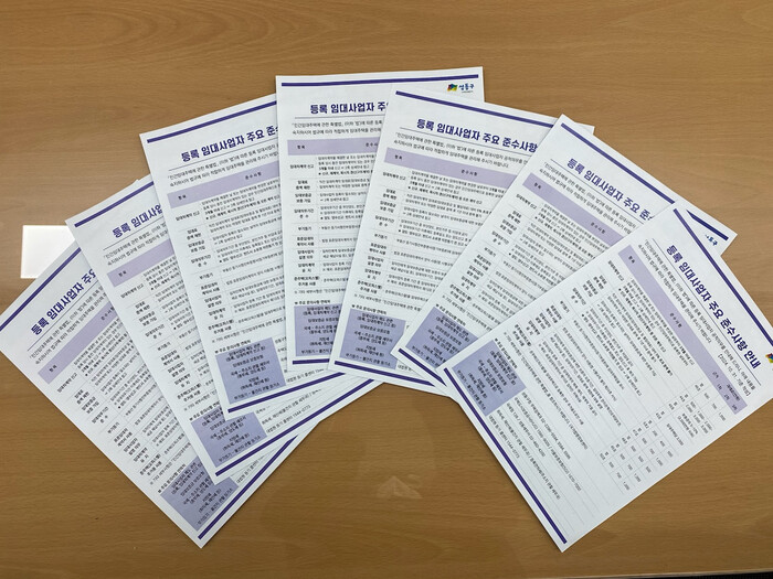 [시민일보 = 박소진 기자] 성동구(구청장 정원오)는 잦은 법령 개정과 정책 변화로 어려움을 겪고 있는 지역내 등록 임대사업자를 위해 ‘등록 임대사업자 주요 준수사항’ 안내문을 제작해 발송했다고 5일 밝혔다.