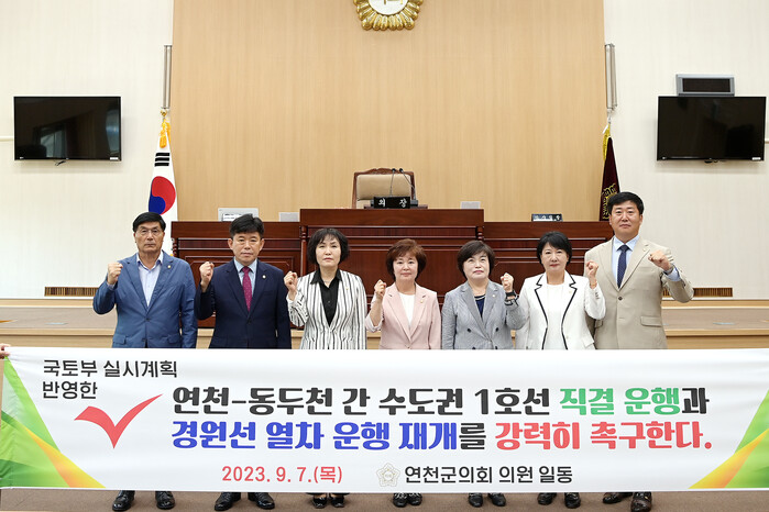 본 안건을 제안 설명한 박운서 의원은 “우리군은 휴전 이후 70년 간 접경지역이라는 지리적 특수성과 각종 중첩규제로 지역발전에 많은 장애가 되고 있고, 그중에서도 대중교통 인프라는 매우 취약한 상황으로 지역주민의 불편이 매우 극심해, 이를 해결하기 위해 연천~동두천 간 수도권 1호선 직결 운행과 경원선 열차 운행 재개를 촉구한다”라고 결의안 채택의 취지를 설명했다.
