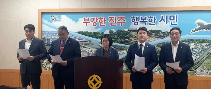 진주시의회 도시환경위원회 소속 의원들은 26일 진주시청 브리핑룸에서 기자회견을 열고 “시는 사업명을 진주대첩광장에서 진주대첩역사공원으로 변경한 뒤 이를 뒤늦게 홍보하고 있다”며 “그사이 공원지원시설 등을 포함한 설계변경에 대한 시의회 업무보고는 한 차례도 없었다”고 주장했다.