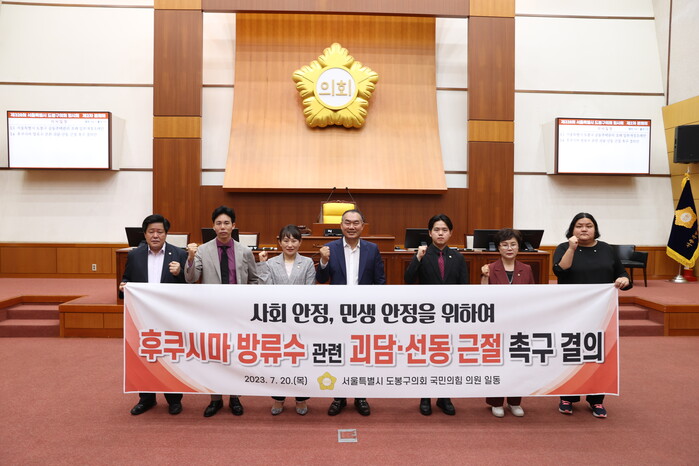 | ▲ '후쿠시마 방류수 관련 괴담·선동 근절 결의안'을 채택한 도봉구의원들이 기념촬영을 하고 있다. (사진=도봉구의회 제공) |