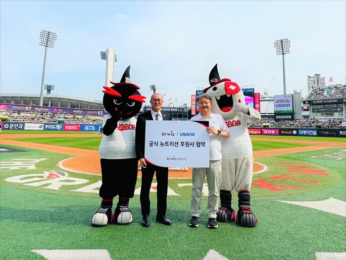 ‘유사나 프로야구 브랜드 데이’는 유사나와 kt 위즈의 3년 연속 공식 뉴트리션 후원 체결을 기념하는 자리로 유사나 가족들과 프로야구 팬들을 위한 다양한 이벤트를 진행하며 경기의 재미와 기쁨을 더했다.