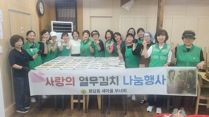 이어 용답동 새마을부녀회는 지난 6월24일 회원 20명이 참여한 가운데, 이틀에 걸쳐 정성껏 열무김치를 담갔다. 완성된 열무김치 300여 포기는 지역내 홀몸노인 100가구에 따듯한 마음과 함께 전달됐다.
