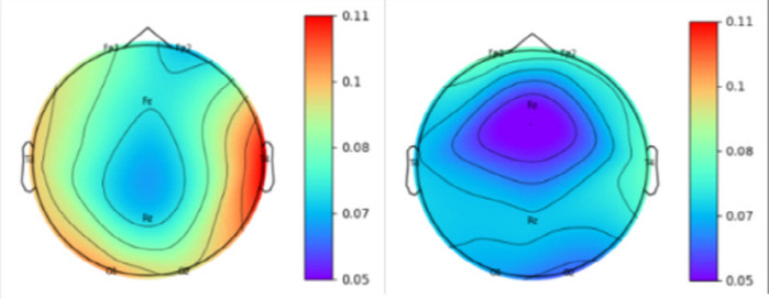 | ▲ 사진제공=고양시청/원예치유 전후 뇌파 측정 사진 (푸른색을 띌수록 스트레스가 감소됨을 나타낸다) |