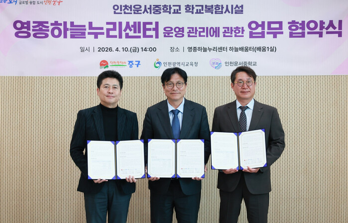 [인천=문찬식 기자] 인천시교육청(교육감 도성훈)은 인천중구청과 지난 10일 영종국제도시 내 최초 학교복합시설인 ‘영종하늘누리센터’의 시설 운영·관리에 관한 실시협약을 체결하고 상호 협력하기로 했다.