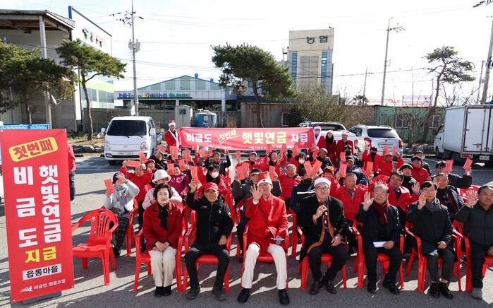 | ▲ 비금도 주민들이 햇빛연금 대상 선정을 기뻐하고 있다(출처=신안군) |