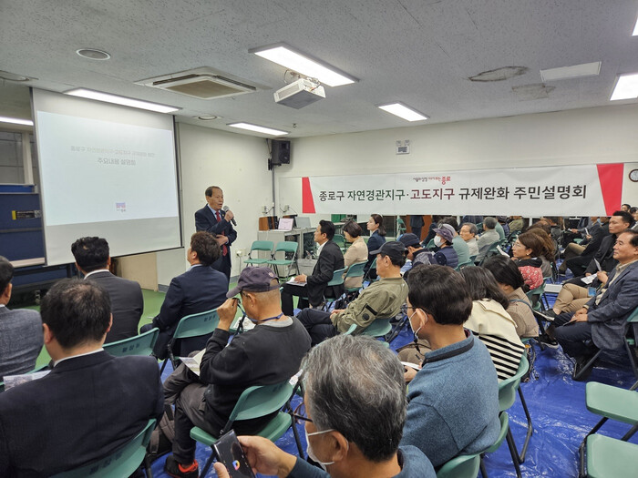 [시민일보 = 이대우 기자] 종로구(구청장 정문헌)가 이달 23일과 30일 ‘용도지구 규제완화 주민설명회’를 가졌다.