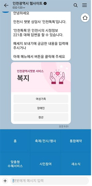 | ▲ 인천시 챗봇 서비스 화면 (사진제공=인천시) |