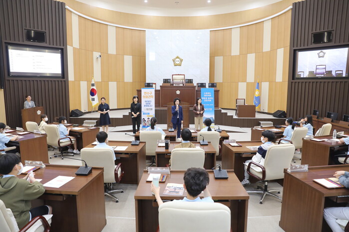 또한, 홍보영상과 실제 본회의 영상을 시청하며 의회에서 하는 일을 알아본 뒤, 방청석, 의원실, 상임위원회실, 의장실·부의장실, 의회사무국 사무실 등을 둘러보는 시설견학 시간을 통해 의회가 어떻게 구성되어있는지 알 수 있는 시간을 보냈다.