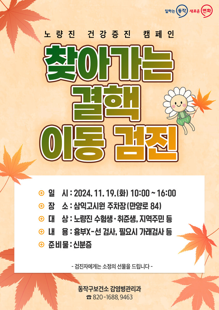 | ▲ 동작구 ‘찾아가는 결핵 이동검진’ 홍보 포스터. (사진=동작구청 제공) |