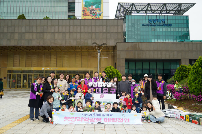 이날 행사에는 이필형 구청장을 비롯해 어린이집 원아, 경증치매가족, 서울 청년센터 오랑 대학생, 동대문구 정원사 등 다양한 구민들이 참석하였으며, 이들은 함께 꽃을 식재하며 청량리역 앞 광장 매력정원을 아름답게 채웠다.