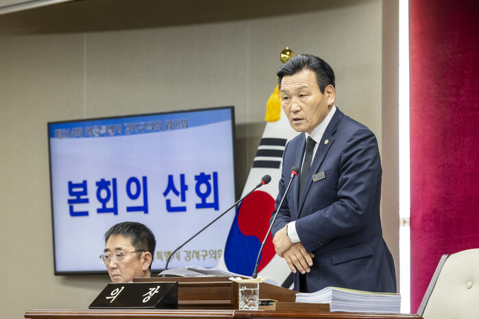 | ▲ 박성호 의장이 제314회 임시회 제2차 본회의에서 산회를 선포했다. (사진=강서구의회 제공) |