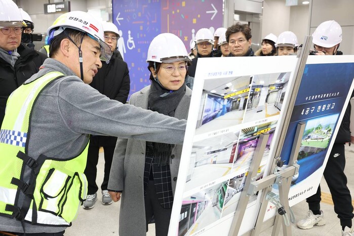 | ▲ GTX-A 연신내역 안전 점검하고 있는 김미경 구청장이 관계자의 설명을 듣고 있다. (사진=은평구청 제공) |