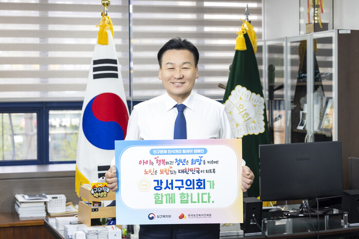 [시민일보 = 박소진 기자] 박성호 서울 강서구의장이 최근 인구감소 위기에 대한 사회적 공감대 형성을 위해 ‘인구문제 인식개선 릴레이 캠페인’에 참여했다.