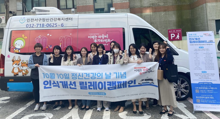 [인천=문찬식 기자] 인천 서구(구청장 강범석)는 정신건강의 날(10월 10일)을 기념하여 지난 4일 ‘정신건강 인식개선을 위한 마음안심버스와 함께하는 릴레이 캠페인’의 출발을 알리는 발대식을 했다고 밝혔다.