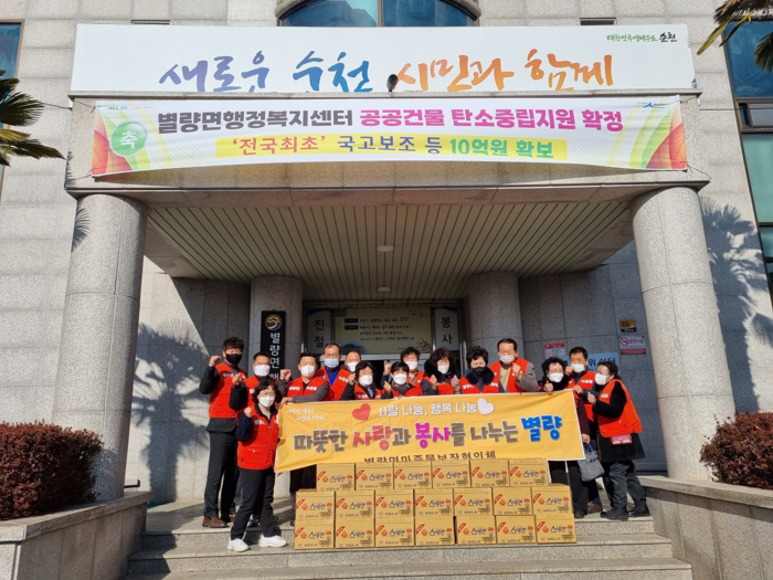 | ▲ 순천시 별량면 마중물보장협의체, 명절맞이 라면 나눔(출처=순천시) |