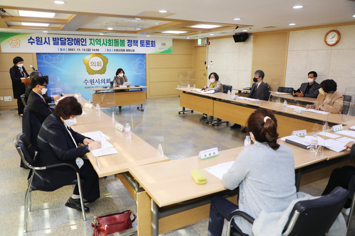 박명래 장애인복지과장은 ▲발달장애인 조기발견체계 및 서비스 연계 ▲발달장애인 주간활동서비스 바우처 제공 ▲장애인 재활·여가문화프로그램 운영 등 수원시에서 추진하는 발달장애인 지역사회 돌봄 사업들을 소개했다.