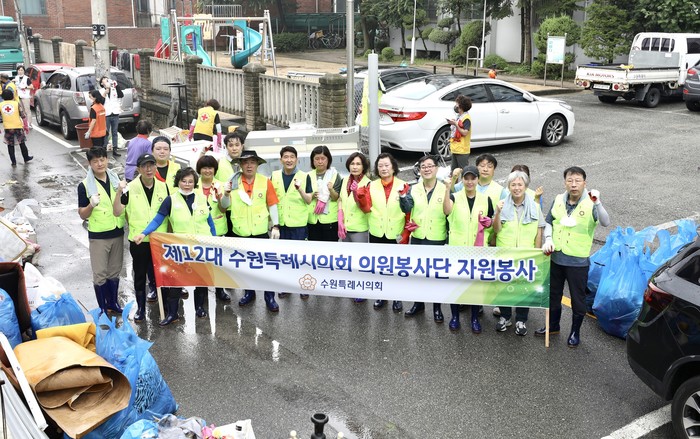[수원=임종인 기자] 경기 수원시의회 의원봉사단이 최근 집중호우로 침수피해를 입은 권선구 평동 지역을 찾아 수해복구 활동을 펼쳤다.
