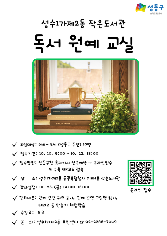 | ▲ 성수1가제2동 독서 원예 교실 홍보물. (사진=성동구청 제공) |