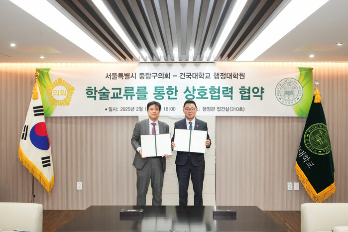 [시민일보 = 여영준 기자] 서울 중랑구의회(의장 최경보)가 최근 건국대학교 행정대학원과 '학술교류를 통한 상호협력' 협약을 체결했다.