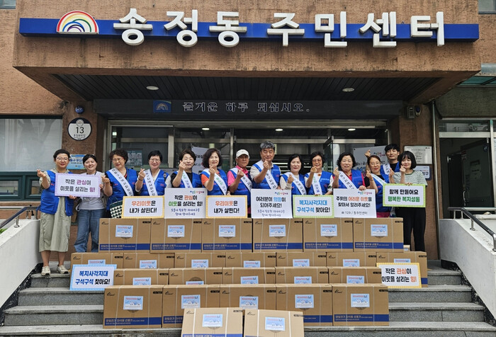 한편 송정동 지역사회보장협의체는 매년 명절음식 나누기, 고위험가구 1대1 일촌맺기, 홀몸노인 생신잔치 등 다양한 복지 활동을 통해 따뜻한 이웃사랑을 실천하고 있다.