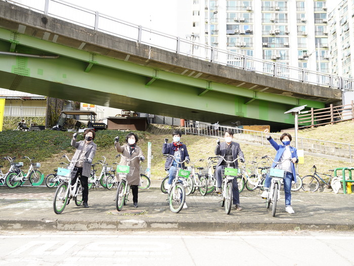 현장을 방문한 의원들은 안양천을 자전거로 이동하며 자전거도로 노면표시 현장을 확인하고, 신정교 옆 안양천 제방 홍수방어벽 설치현황, 안양천 생태공원 조성 현황, 우드볼장 및 파크골프장 등 여러 시설들이 편리하고 안전하게 운영되고 있는지와 개선사항에 대해 주민의 눈높이에서 꼼꼼하게 살폈다.