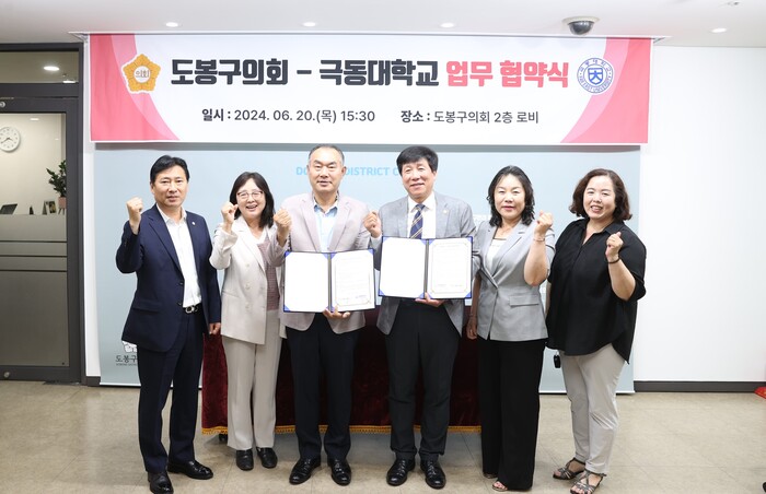 이날 협약식은 강신만 도봉구의회 의장, 정승구 복지건설위원장, 극동대학교 사회복지학과 이연수 학과장, 임은의 사회복지학장, 강장미 사회복지학과 교수 등이 참석한 가운데 진행됐다.