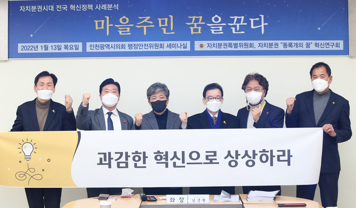 [인천=문찬식 기자] 인천시의회 자치분권특별위원회가 최근 인천시의회 행정안전위원회 세미나실에서 ‘마을주민 꿈을 꾼다’를 주제로 자치분권시대 전국 혁신정책 사례분석 정책연구 보고회를 자치분권 ‘동록개의 꿈’ 혁신연구회와 공동으로 개최했다.