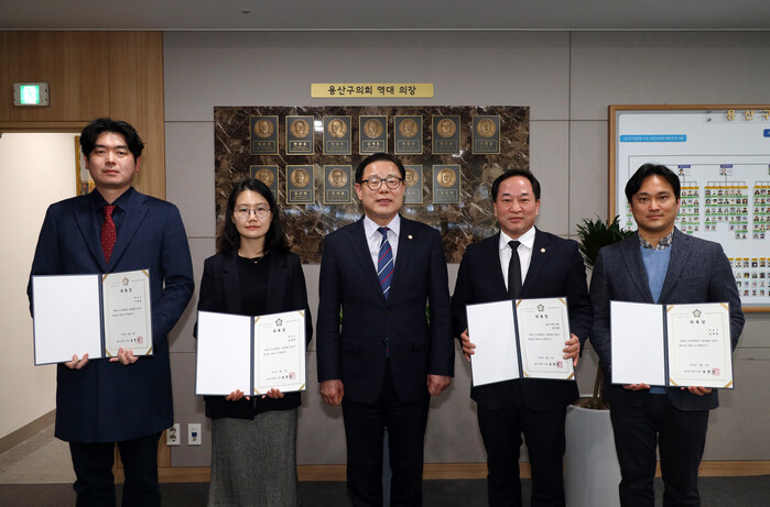 [시민일보 = 홍덕표 기자] 서울 용산구의회(의장 오천진)는 제281회 임시회 의결을 통해 4명의 2022회계연도 결산검사위원을 선임하고 최근 의장실에서 위촉장을 수여했다고 21일 밝혔다.